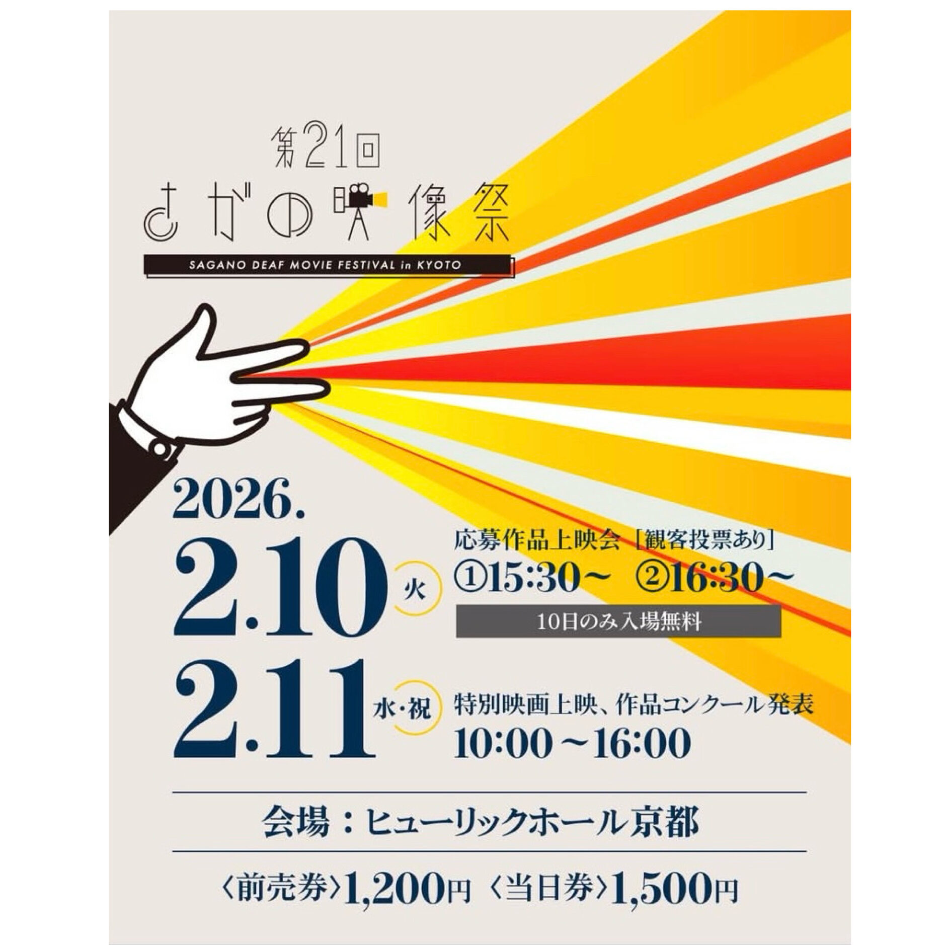 イベントスケジュール・実績 イベントスケジュール 2026年2月10日 第21回 さがの映像祭 2026年1月25日 立川吉笑 京都凱旋独演会2026 イベントカレンダー イベント実績 過去のイベントを見る