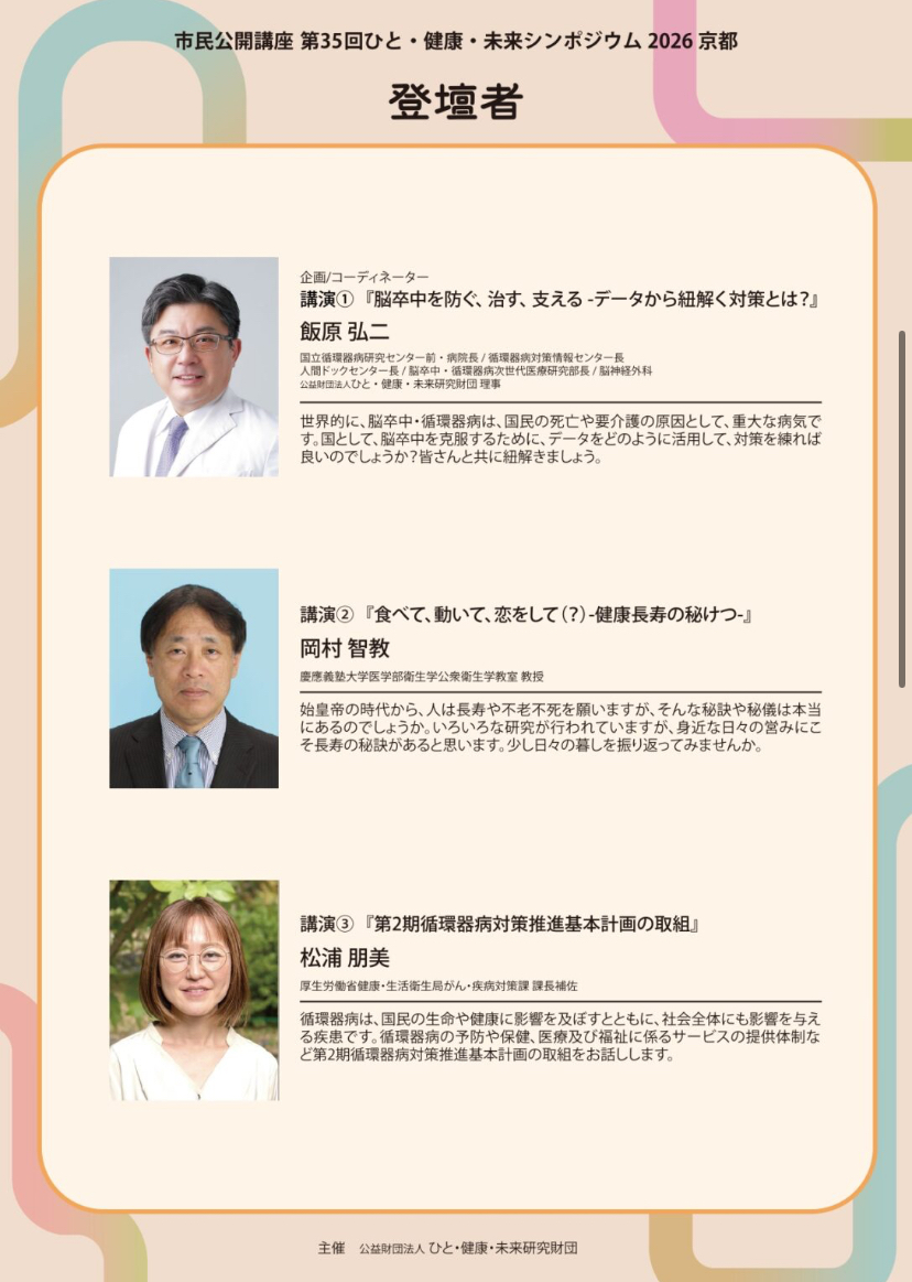 市民公開講座 第35回ひと・健康・未来シンポジウム 2026 京都
